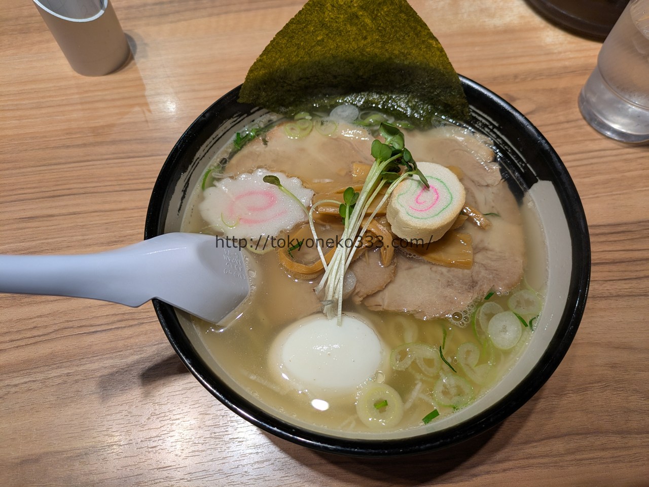 라멘 아지사이의 대표 메뉴인 「소금 라멘」은 투명한 스프가 특징이에요. 다시마로 우려낸 육수에 돼지뼈와 닭뼈를 더하고 천일염으로 마무리한 스프는 보기에도 아름답고, 맛도 특별합니다. 주문 제작된 쌀국수 같은 면발과 어우러지면 그 맛이 더 살아나죠.